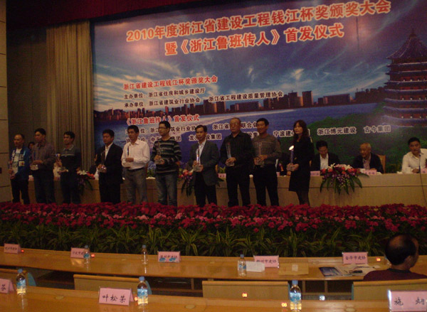 日期:2010-10-21杭州办事处黄祥山(右4)2010年10月20日下午,浙江省2010年度建设工程“钱江杯”奖优质工程颁奖大会在浙江省人民大会堂国际厅隆重举行。会议由浙江省住房和城乡建设厅主办,由浙江