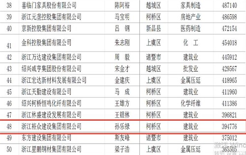 日期:2020-09-21近日,我市工商联根据全国工商联上规模民营企业调研方案,在企业自行申报的基础上,以2019年营业收入总额为标准,排序出“2020绍兴市民营企业100强名单”。我司上榜位列第48位。(